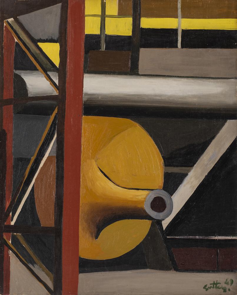 Renato Guttuso ACCIAIERIE (TERNI) olio su tela, cm 55x44,5 firmato e datato...