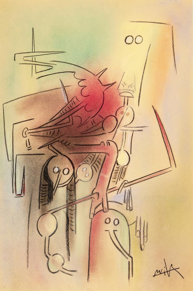 Wifredo Lam TOTEM pastello su cartoncino, cm 60x41 firmato sul retro: firmato...