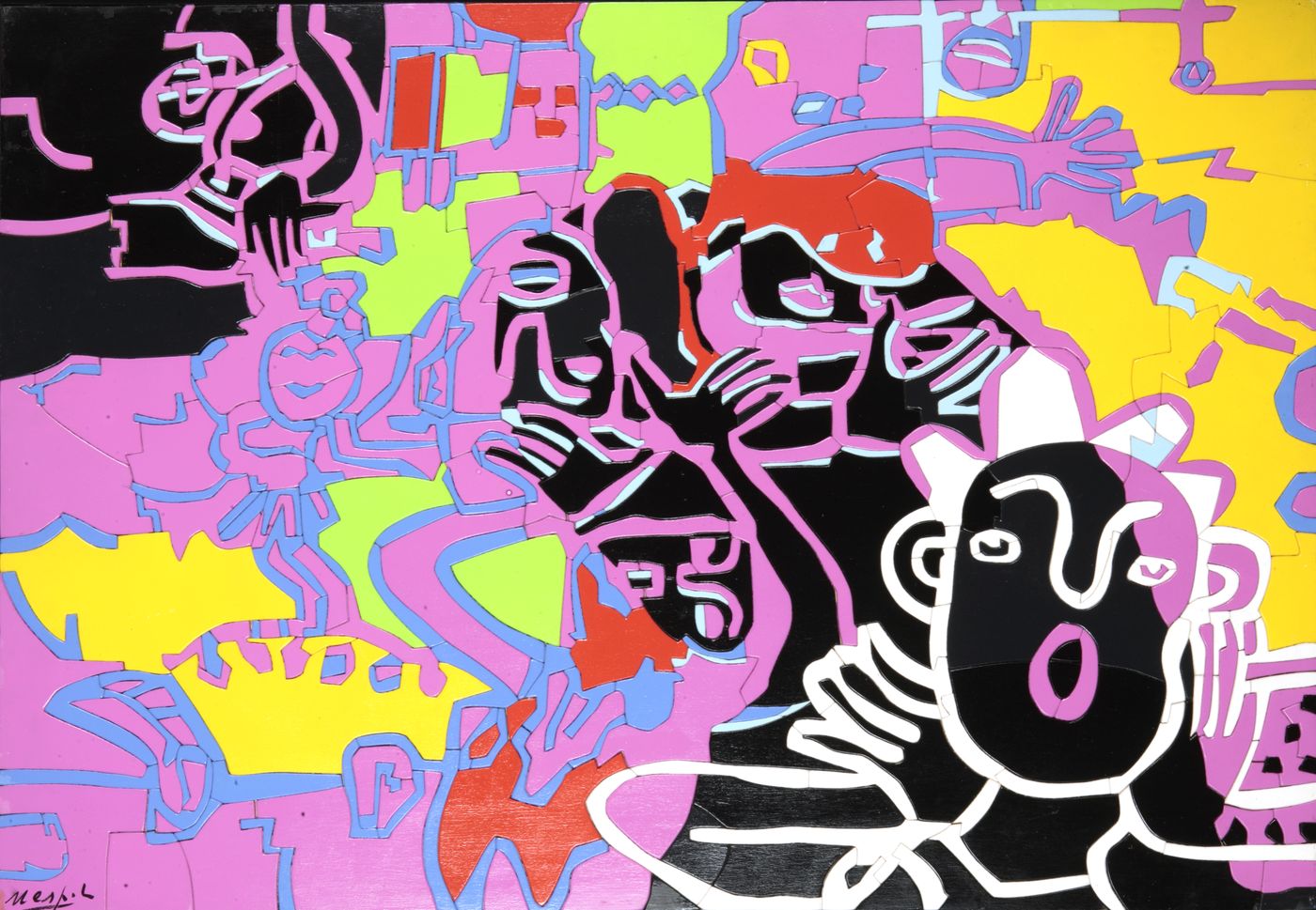 NESPOLO UGO Mosso Santa Maria (VC) 1941 "On Oriente" 70x100 tarsia lignea e acrilici Opera firmata in basso a sinistra e al retro con titolo e timbro dell'atelier dell'artista Autentica dell'artista su fotografia