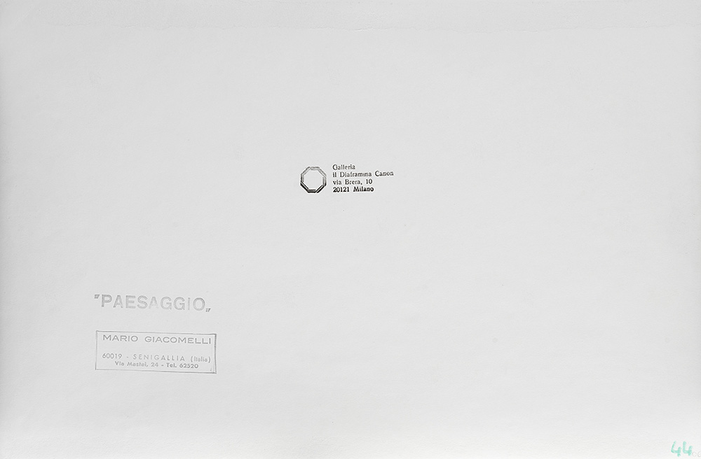 Artist's credit stamp and Gallery 'Il Diaframma' credit stamps on the verso.