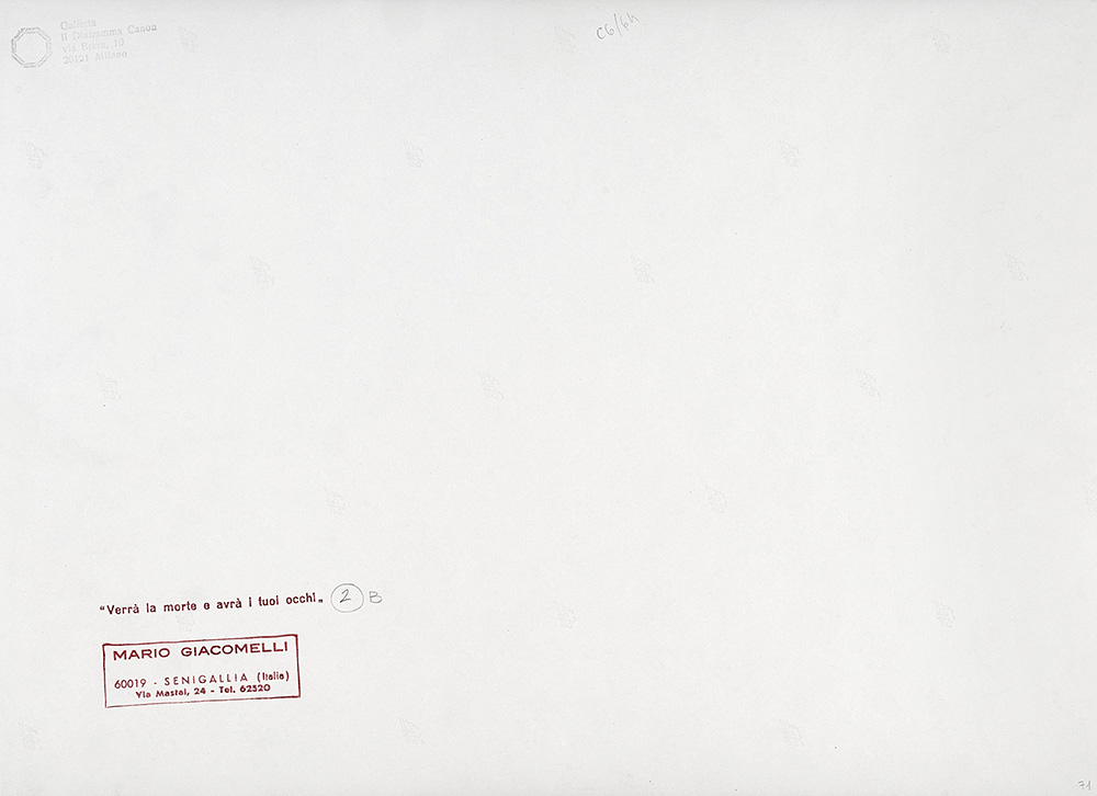 Artist's credit stamp, title and the Gallery 'Il Diaframma' credit stamps on the reverse.