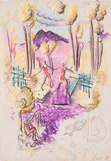 FAUSTO MELOTTI Rovereto 1901 - Milano 1986 SENZA TITOLO, 1929 pastelli, matita su carta, cm 32,1x22. Firmato e datato in basso a destra: Melotti 1929. Opera archiviata presso la Fondazione Fausto Melotti, Milano, con il codice: T 29 003