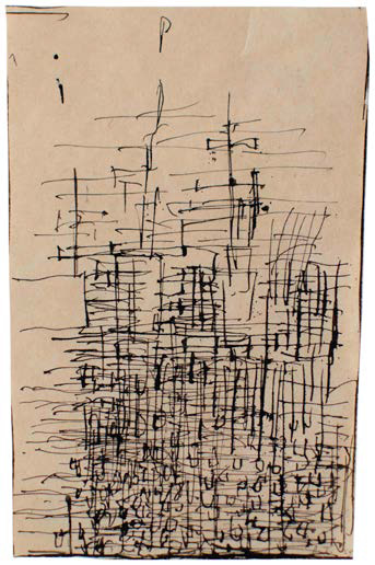 ENRICO DELLA TORRE Pizzighettone 1931 SERRA, 1959 china su carta, cm 18,5x12. Siglato e datato in basso a destra: D T 59. Provenienza:Milano, Galleria delle Ore (etichetta al verso)