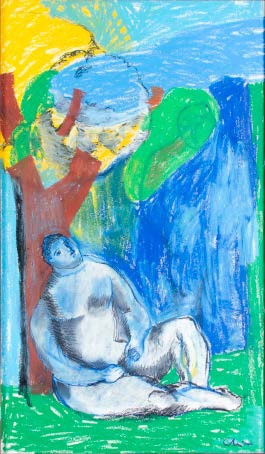 SANDRO CHIA Firenze 1946SENZA TITOLO tecnica mista su carta applicata su tela 106x63,5. Firmato in basso a destra: Chia. Opera accompagnata da autentica sufotografia firmata dall’artista