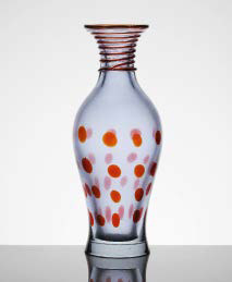 MANIFATTURA MURANESE Vaso con decoro a macchie rosse e collo con spirale...