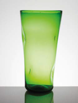 MANIFATTURA MURANESE Vaso in vetro con decorosfumato nei toni del verde....