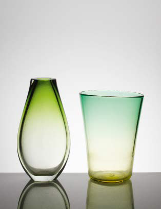 MANIFATTURA MURANESE Vaso in vetro pesante con decoro sfumato nei toni del verde. altezza: cm 37