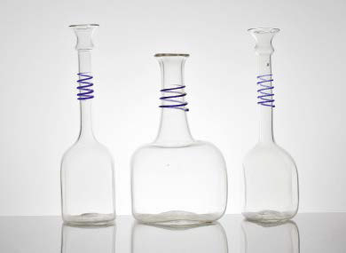 Lotto 149 | MANIFATTURA MURANESE Tre bottiglie in vetro trasparente concollo decorato con...