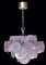 CARLO NASON (1935) A.V. MAZZEGA Lampada a sospensione formata da struttura in metallo e dischi in vetro iridato nei toni del rosa. dimensioni: cm 50x50 circa