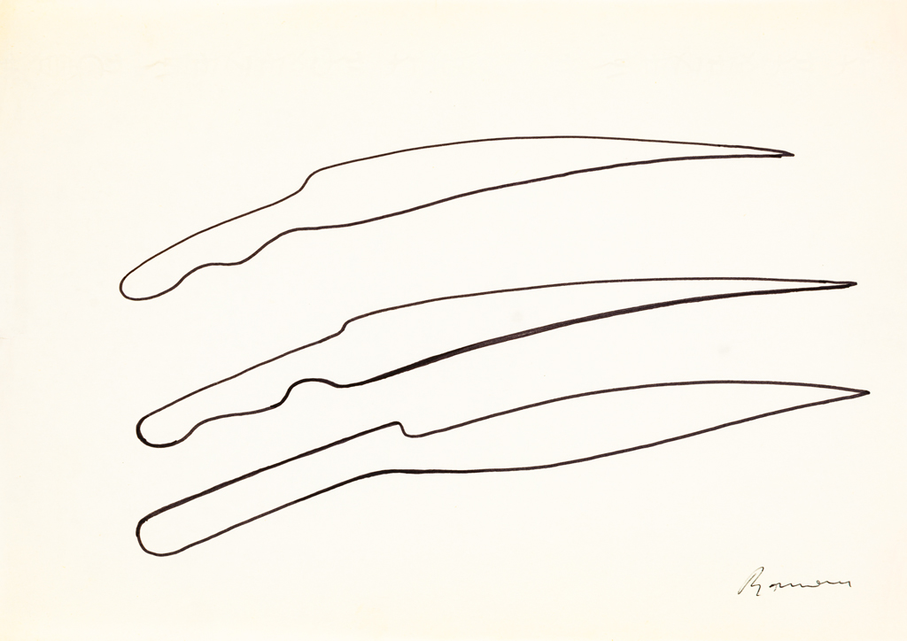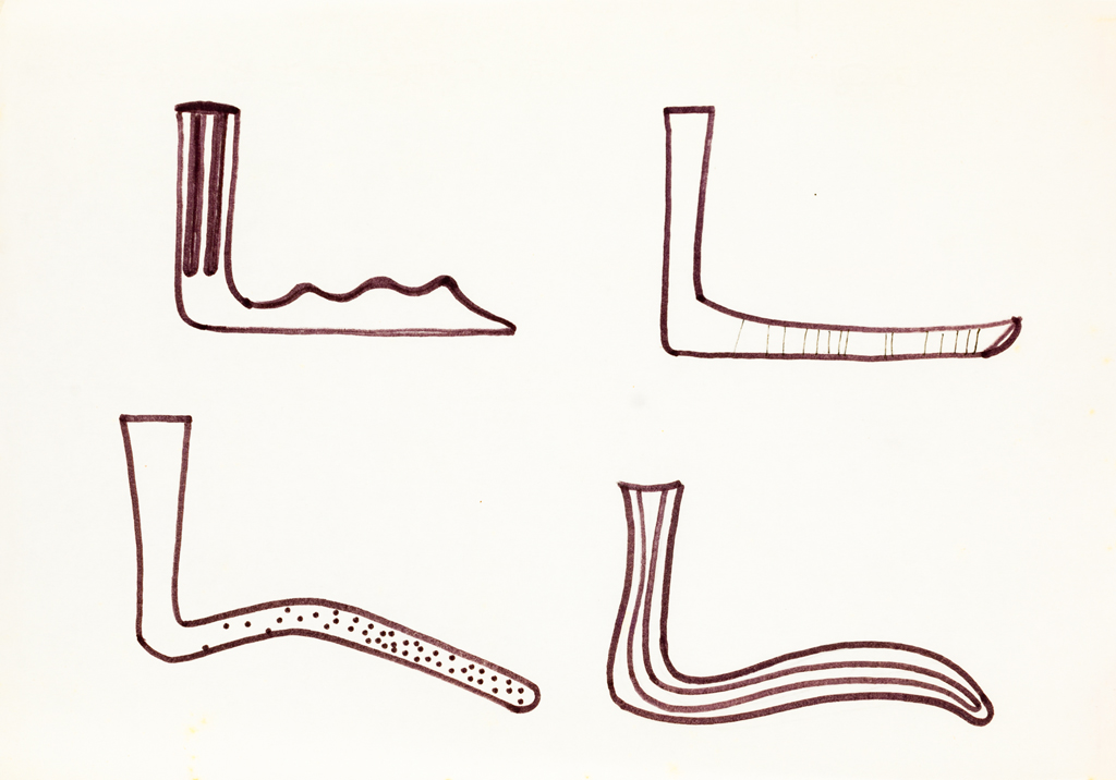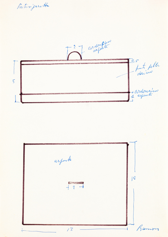 Le opere rappresentano studi per la realizzazione di oggetti quali un portacenere, un portamatite, un portapenne, un pettine, uno specchio, un calzascarpe e un tagliacarte