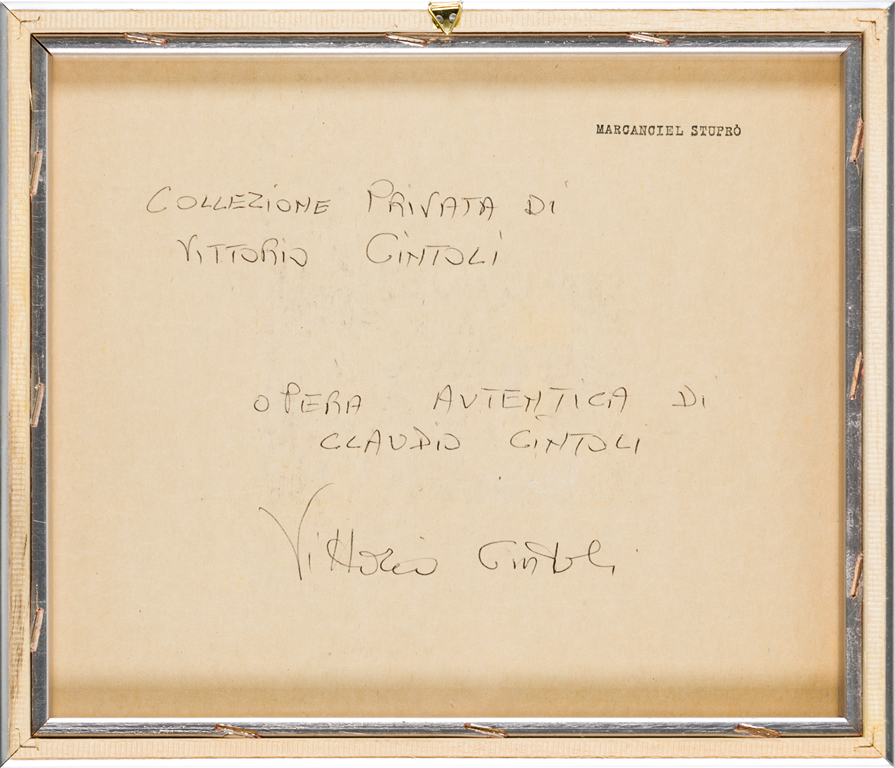 Dichiarazione di autenticità a cura di Vittorio Cintoli al retro