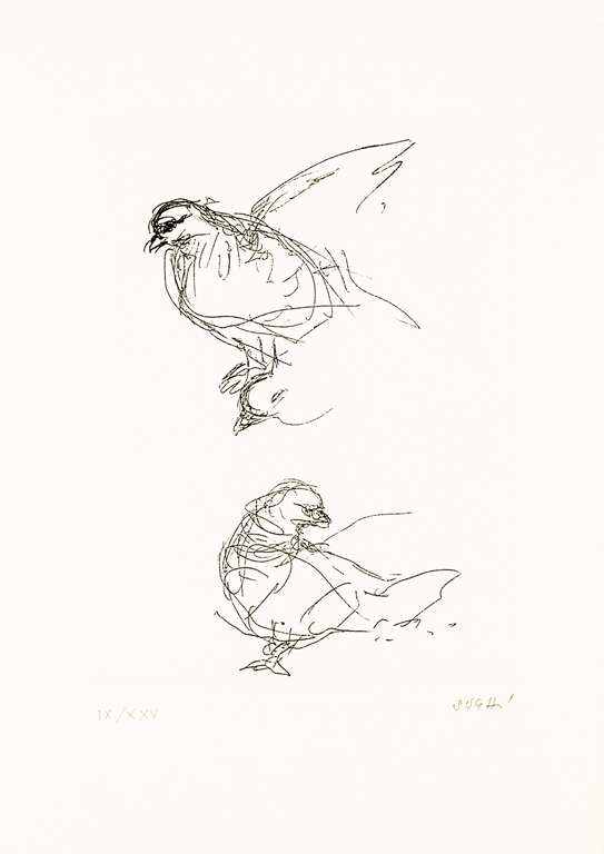 Libro d'arte composto da un testo di Aglauco Casadio e una suite di tre acqueforti di Alberto Sughi, ciascuna recante firma e numerazione (Esemplari IX/XXV) a matita al fronte