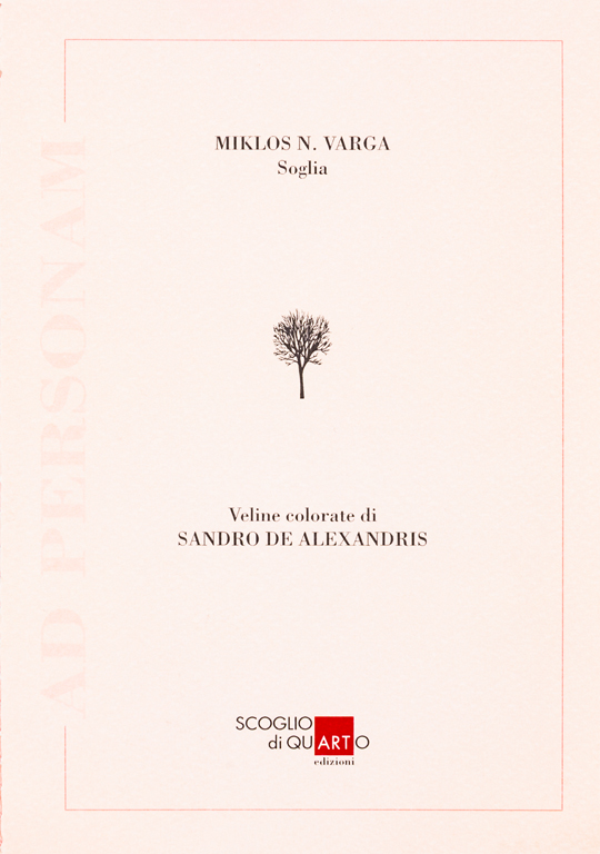 L'opera è entro libretto originale con poesia di Miklos N. Varga realizzato dalla Galleria Scoglio di Quarto in occasione della collettiva Ad Personam per la quale venivano realizzati 30 libretti contenenti 1 pezzo unico per ogni Artista (Esemplare N.11)