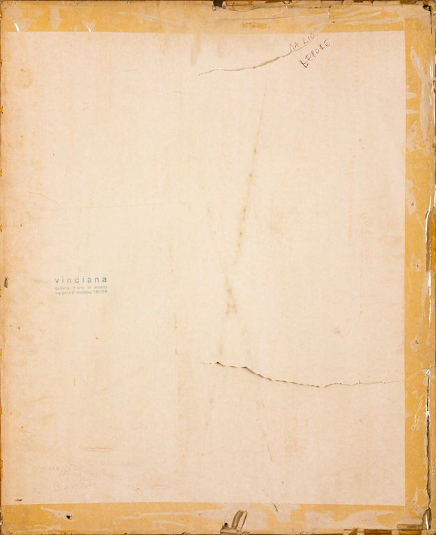 Timbro della Galleria Vinciana al retro del cartone protettivo
