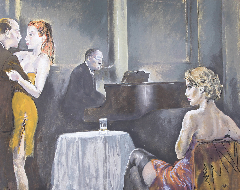 ALBERTO SUGHI Cesena (Fo) 05/10/1928 - Rimini (Rn) 31/03/2012 Il ballo serigrafia su tela ritoccata a mano con pittura a olio cm. 72x91, esemplare CVIII/CLX, firma in basso a destra e al retro, dichiarazione d'autenticità dell'artista con conferma del Notaio Luigi Fasano (Roma) su certificato d'autenticità della Eldec allegato.