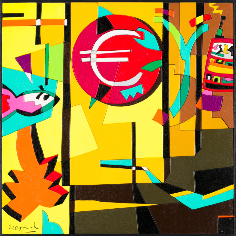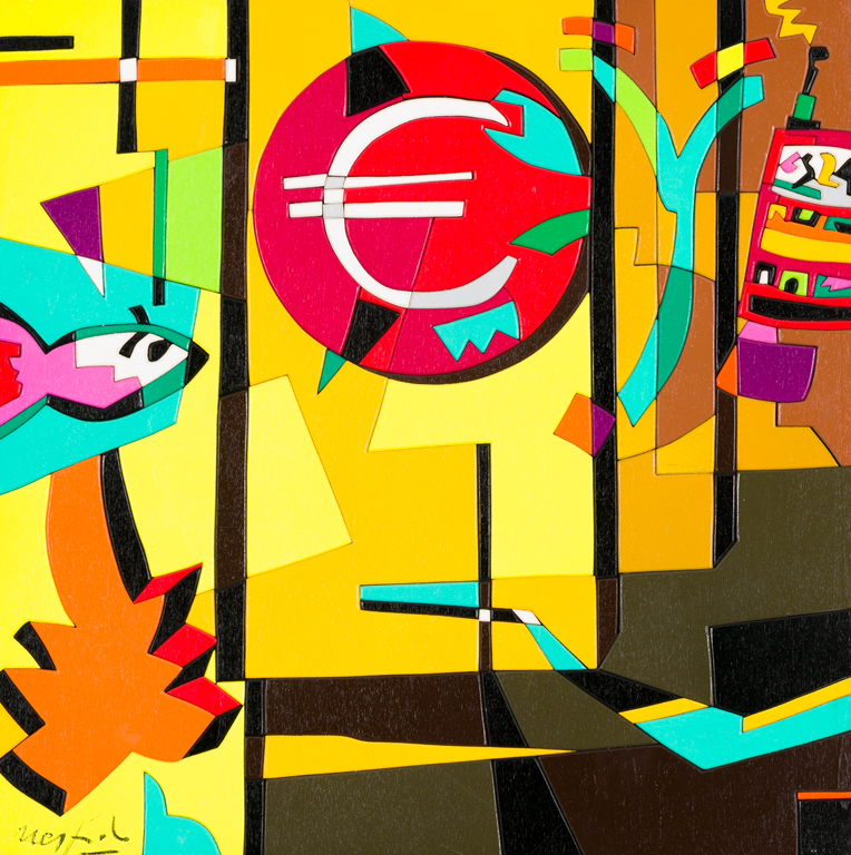 UGO NESPOLO (1941)Le quinte in fila, 2001Acrilici su intarsi di legnocm...