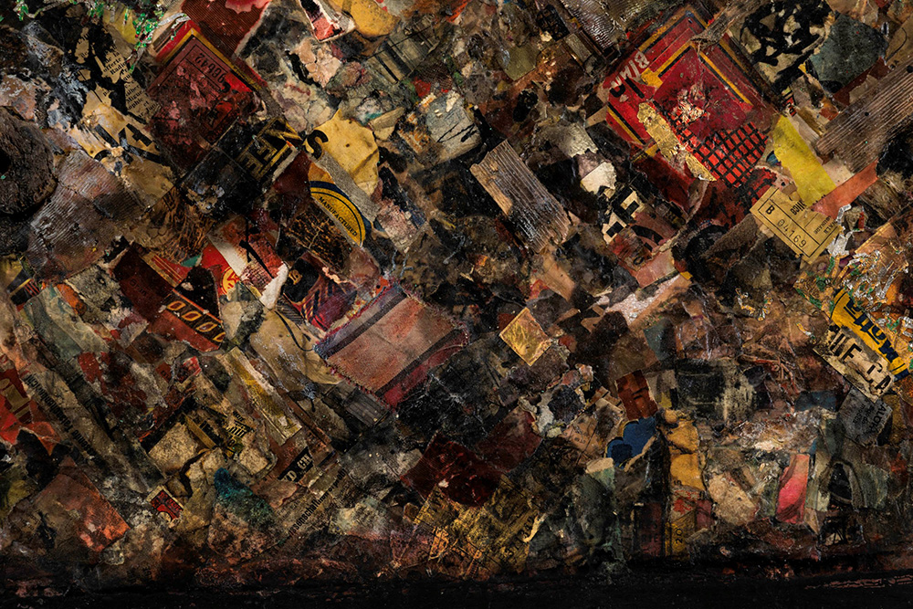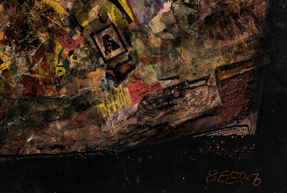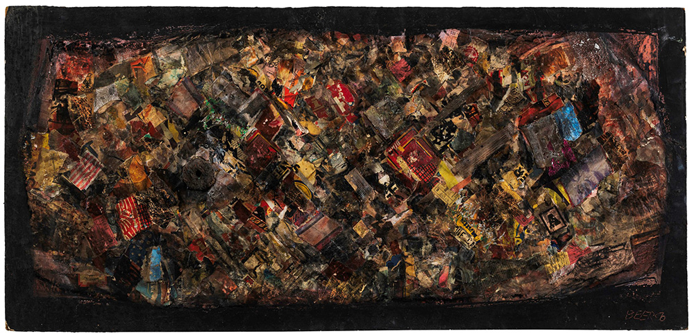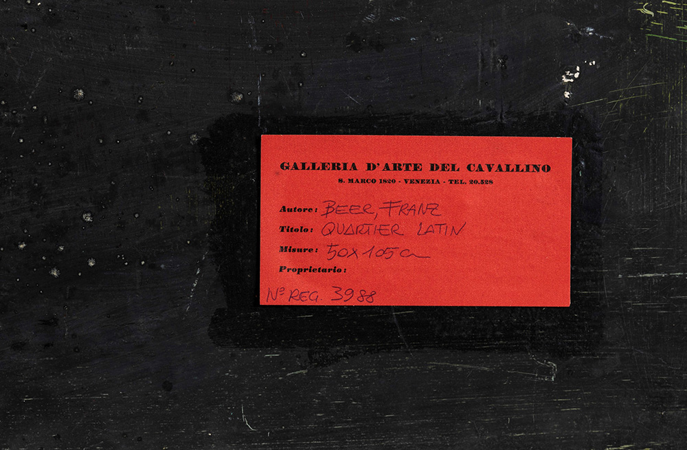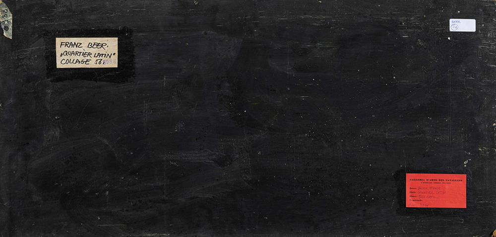 Franz Beer (1929) Quartier latin, 1956 collage e tecnica mista su tavoletta, cm 51x105 firmato in basso a destra firmato al retro Etichetta al retro della Galleria d’Arte del Cavallino, Venezia