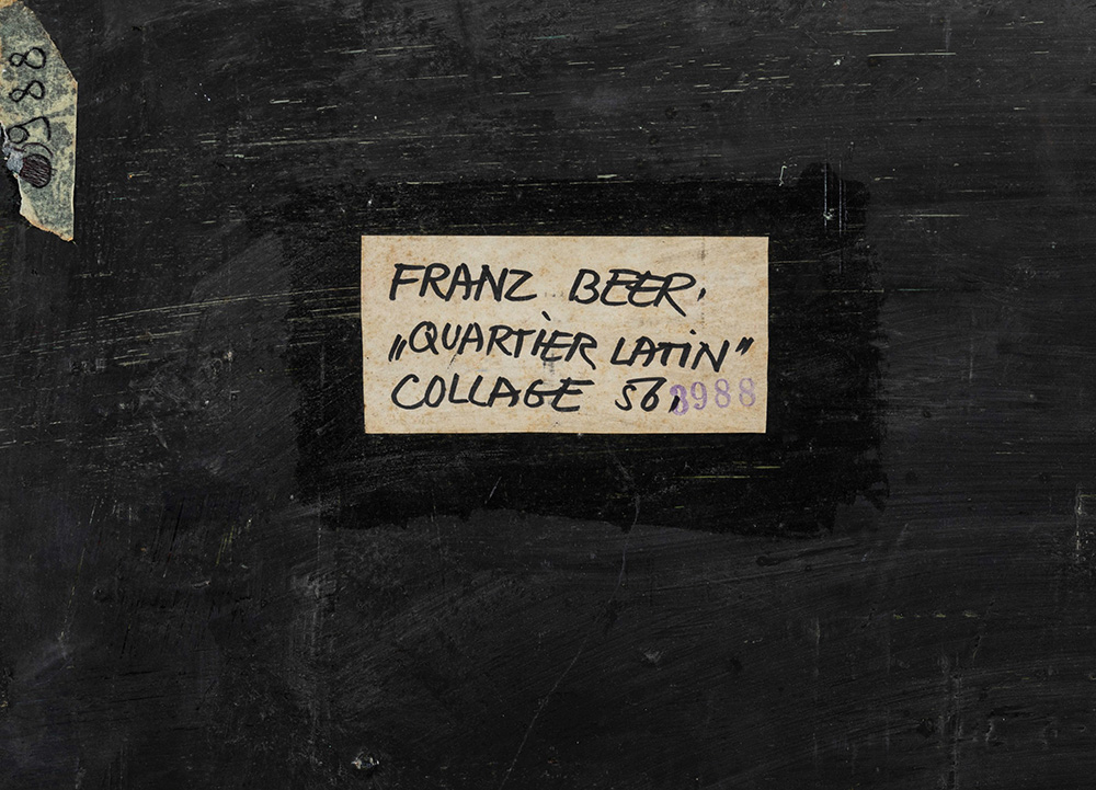 Franz Beer (1929) Quartier latin, 1956 collage e tecnica mista su tavoletta,...