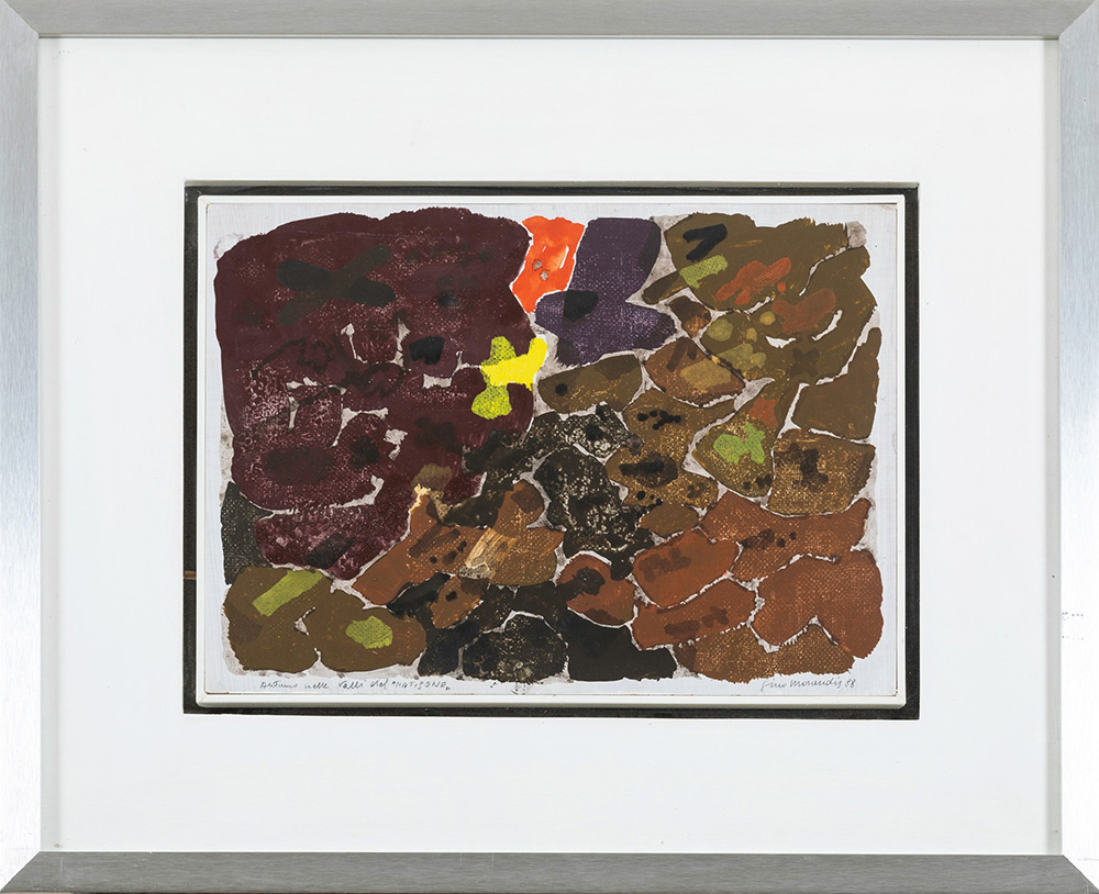 Gino Morandis (1915-1995) Autunno nelle valli del Natisone, 1988 olio su masonite, cm 24x34 firmato e datato in basso a destra intitolato in basso a sinistra Etichetta al retro della Galleria d'Arte del Cavallino, Venezia