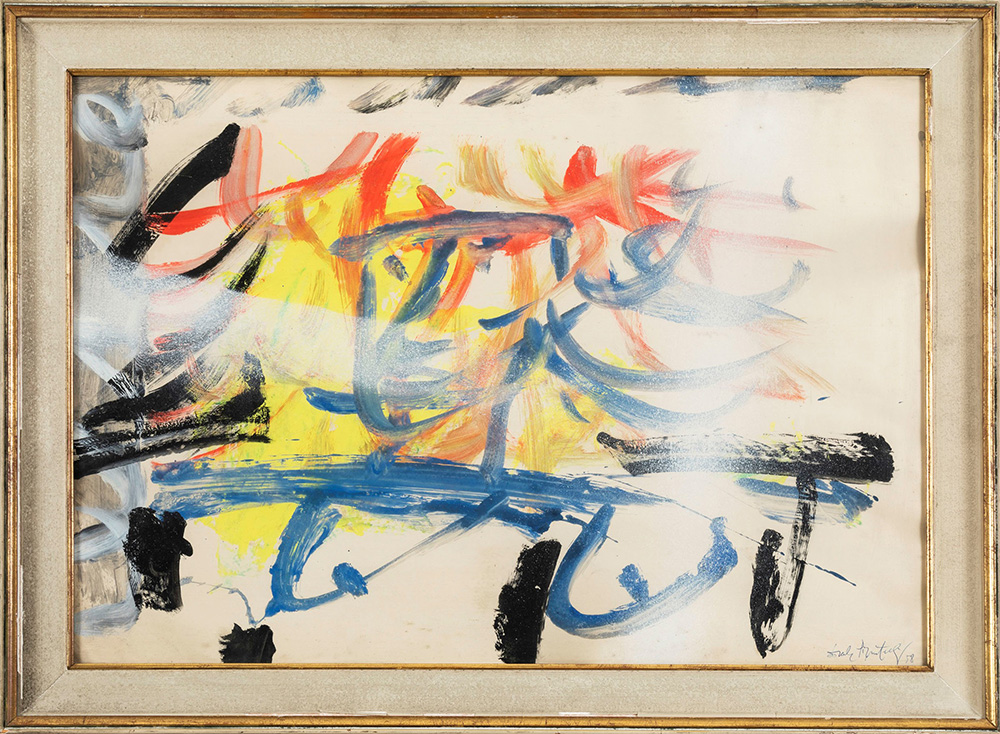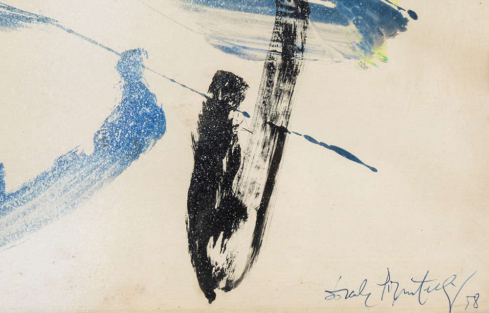 Ercole Pignatelli (1935) Senza titolo, 1958 tempera su carta, cm 50,5x72,5 firmato e datato in basso a destra L’opera presenta ondulazione della carta