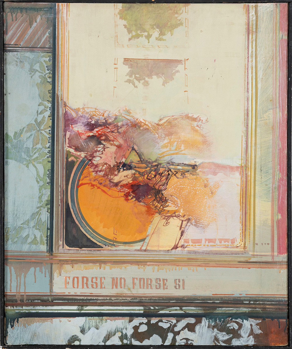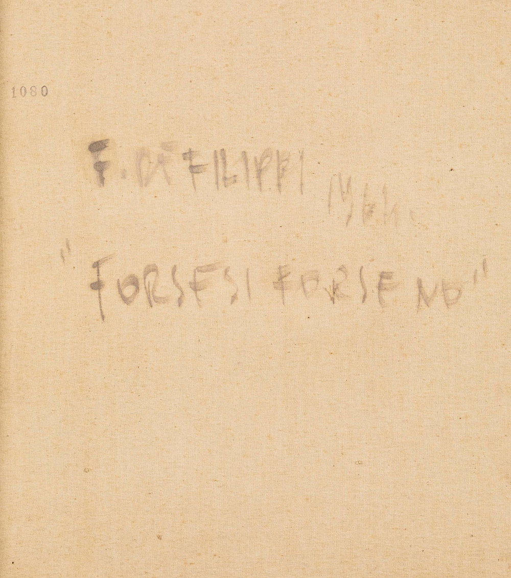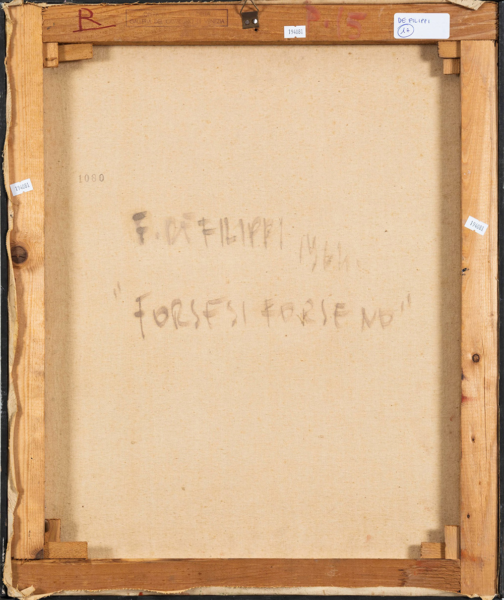 Fernando De Filippi (1940) Forse si forse no, 1964 olio su tela, cm 60x50 intitolato in basso al centro firmato, intitolato e datato al retro Provenienza: Galleria d’Arte del Cavallino, Venezia Collezione privata, Milano