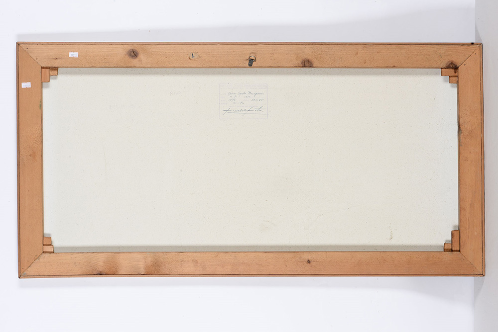 Giancarlo Bargoni (1936) P 1976, 1976 olio su tela, cm 55x110 firmato, intitolato e datato al retro Timbro al retro della Galleria R. Rotta, Genova