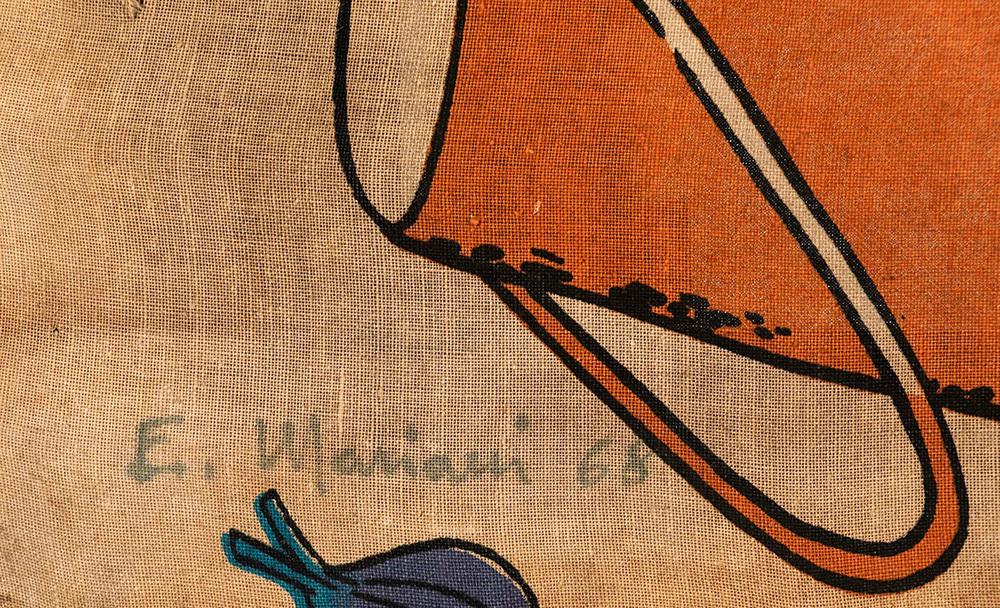 Elio Mariani (1943) Senza titolo, 1968 tecnica mista e inchiostro su tela, cm 41,5x61,5 firmato e datato in basso a sinistra L’opera presenta una lacerazione della tela in basso a sinistra, muffa e foxing sulla superficie