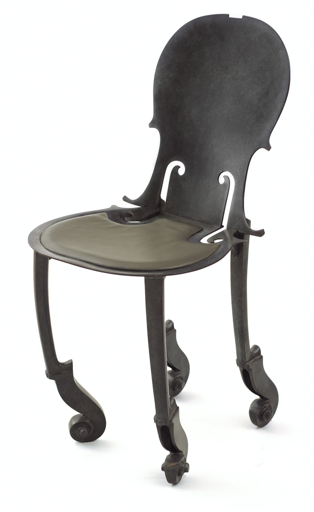 ARMAN Nizza 1928 - New York 22/10/2005 Sedia violoncello scultura in bronzo cm. 85x40x48, esemplare siglato "boquel fd. 104", firma sul piede anteriore destro.