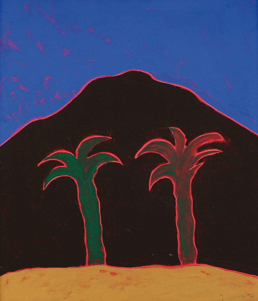 TANO FESTA Roma 02/11/1938 - Roma 09/01/1988 La collina di Tebe, 1986 acrilici su tela cm. 70x60, firma e anno al retro, dichiarazione d'autenticità dell'artista e timbro della Casa d'Aste di Angiolino Calestani su foto, opera registrata presso l'Archivio Tano Festa (Francesco Soligo) come da dichiarazione su foto, pubblicato sul catalogo "Giallo Taxi, un viaggio con Tano Festa, Mostra a domicilio", tenutasi presso la Galleria Angiolino Calestani Arte Contemporanea (MI) al numero 19.