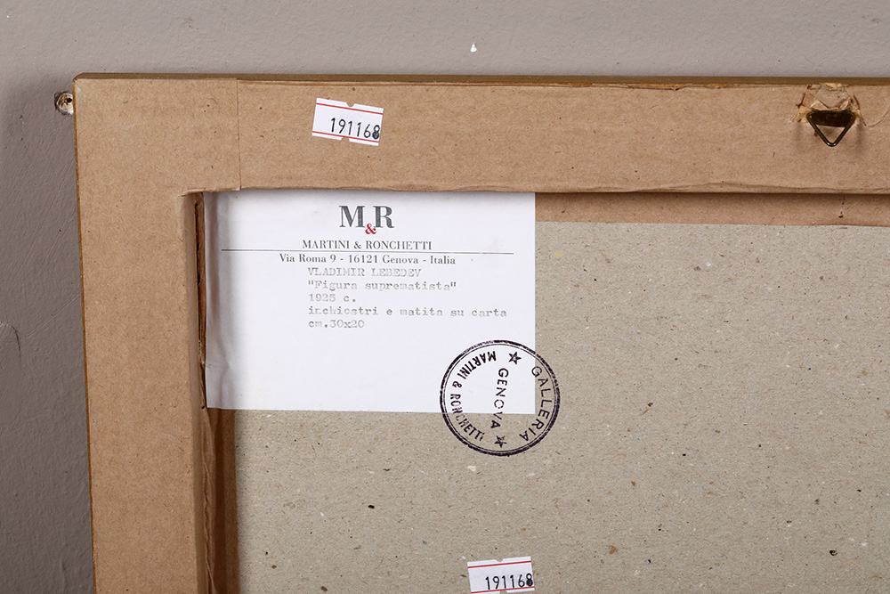 Vladimir Vasil'evich Lebedev (1891-1967) Figura suprematista, 1925 ca inchiostri e matita su carta, cm 30x20 Etichetta e timbro al retro della Galleria Martini & Ronchetti, Genova Provenienza: Galleria Martini & Ronchetti, Genova Collezione privata, Genova