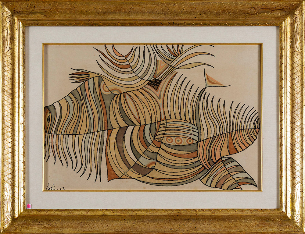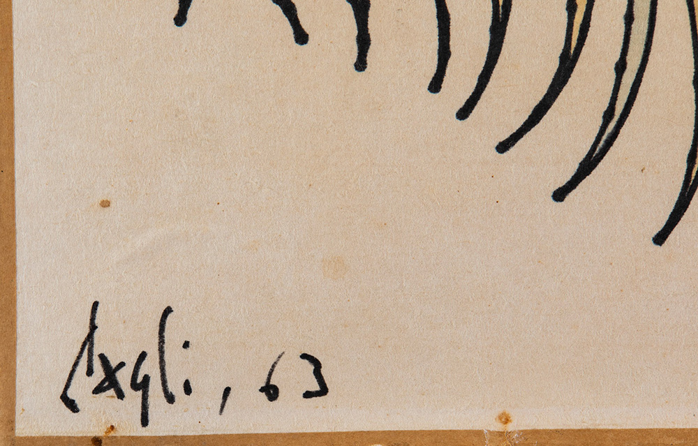 Corrado Cagli (1910-1976) Enigma a Naxos, 1963 inchiostri colorati su carta di riso intelata, cm 43x62 firmato e datato in basso a sinistra Opera registrata presso l’Archivio Corrado Cagli, Roma, con il n. 63 S 3 Provenienza: Collezione privata, Cosenza Collezione privata, Genova