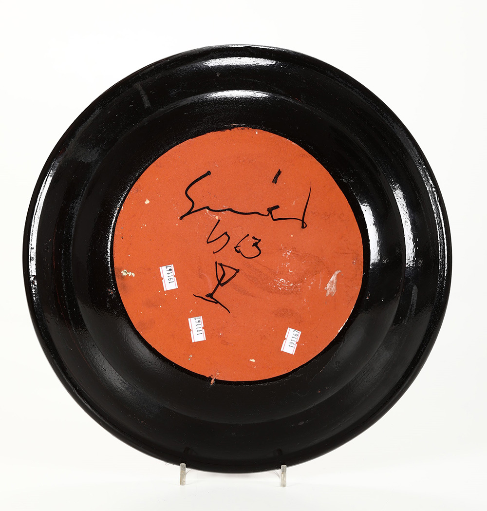 Emilio Scanavino (1922-1986) Senza titolo, 1963 piatto in ceramica policroma graffita, diametro cm 39 firmato e datato al retro L'opera è stata visionata dall'Archivio Emilio Scanavino, Milano, ed è archiviata