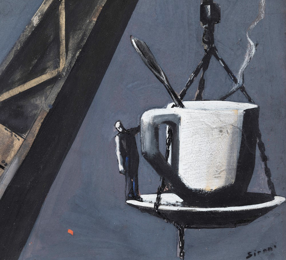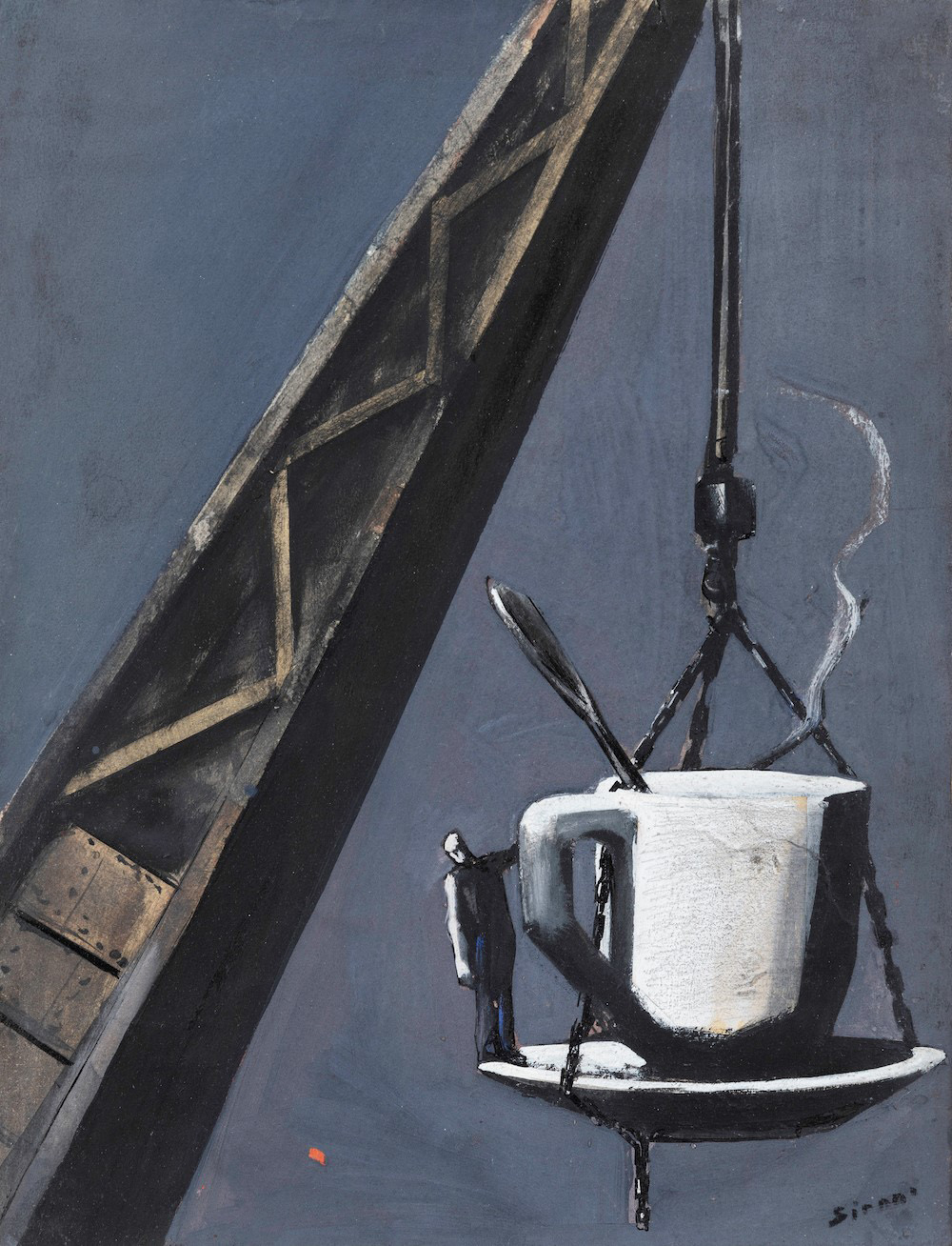 Mario Sironi (1885-1961) Studio per illustrazione, 1926 ca tempera, china, matita, matita grassa e collage su carta, cm 29,5x22,3 firmato in basso a destra Opera archiviata dall'Associazione per il Patrocinio e la Promozione della Figura e dell'Opera di Mario Sironi, Milano, con il numero 145/19 RA Al verso: Studio per un’illustrazione della novella Sotto o sopra - epicedio d’una barba indimenticabile di Giuseppe Zucca, pubblicata in “La rivista Illustrata del Popolo d’Italia”. Anno IV, n. 1, gennaio 1926, pp. 42-43, a matita, matita grassa e tempera Piccola mancanza nella parte centrale verso il basso. Gora d’acqua nella parte centrale sul bordo sinistro