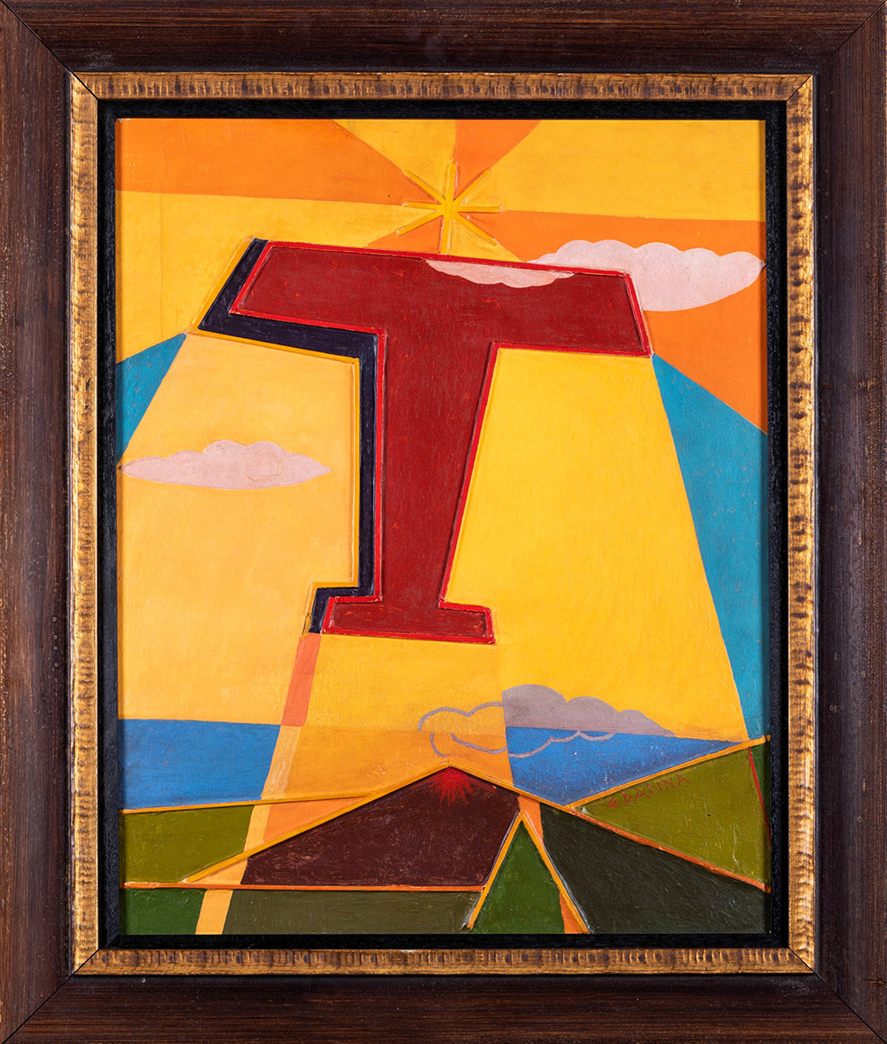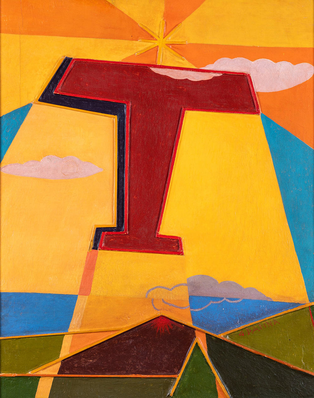 Giulio D'Anna (1908-1978) Aereo caproni+vulcano, 1935-1936 ca polimaterico su tavola, cm 63x50 firmato in basso a destra Autentica su fotografia a cura dell’Archivio Storico Futuristi Siciliani, Palermo