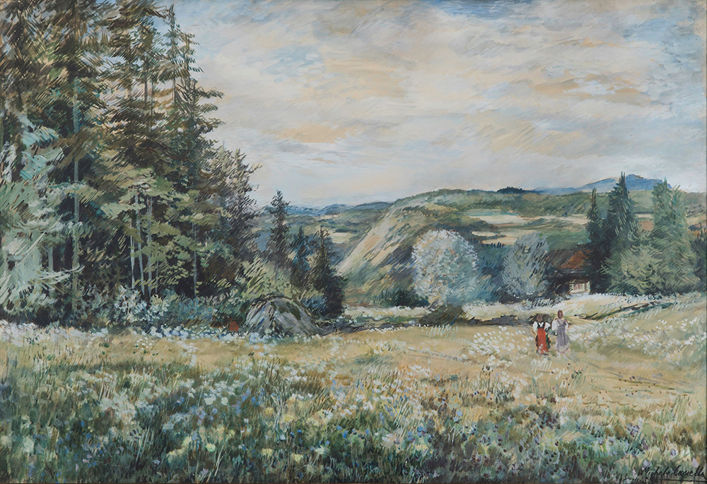 Michele Cascella (1892 - 1989) Siusi, 1938 acquerello su carta, cm 75x110 firmato, intitolato e datato in basso a destra Opera registrata presso l’Archivio Generale dell’opera di Michele Cascella, Milano, in data 29 gennaio 2019, con il n. 38/17 Provenienza: Collezione privata, Milano