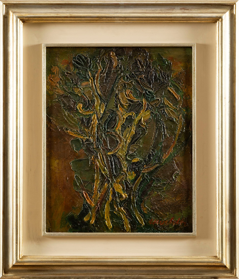 Ennio Morlotti (1910-1992) Fiori secchi, 1959 olio su tavola, cm 48x38 firmato in basso a destra intitolato e datato al retro Opera registrata presso l’Archivio delle opere di Ennio Morlotti, Milano, con il n. 2830 Provenienza: Galleria Claude Bernard, Paris L’opera presenta una lieve imbarcatura della tavola di circa cm 10, per il resto è in buone condizioni