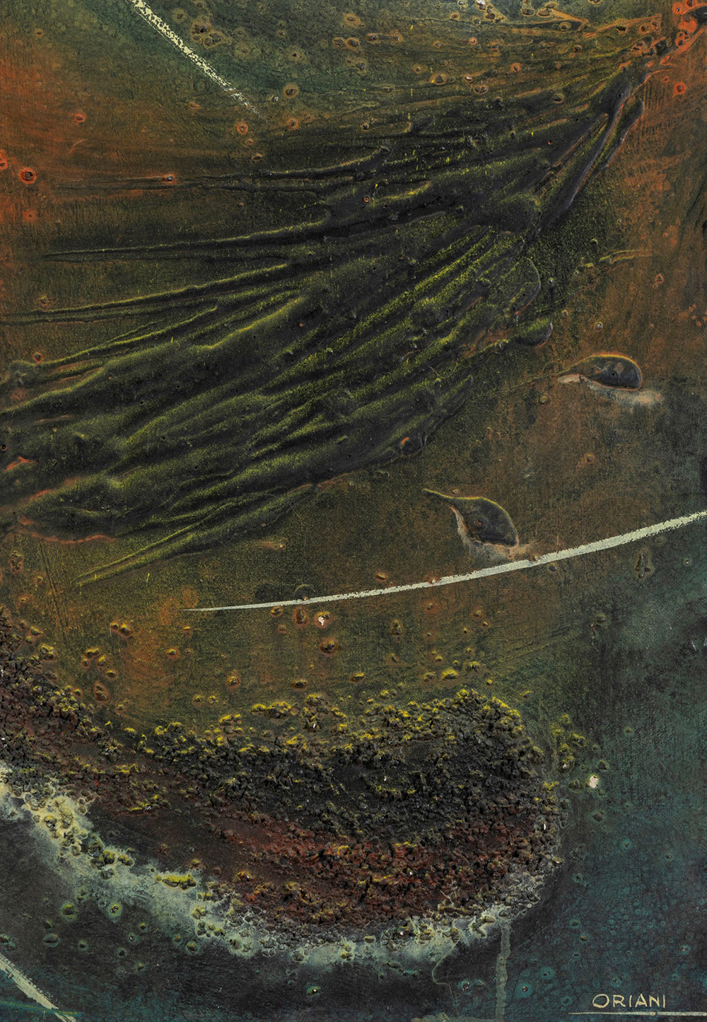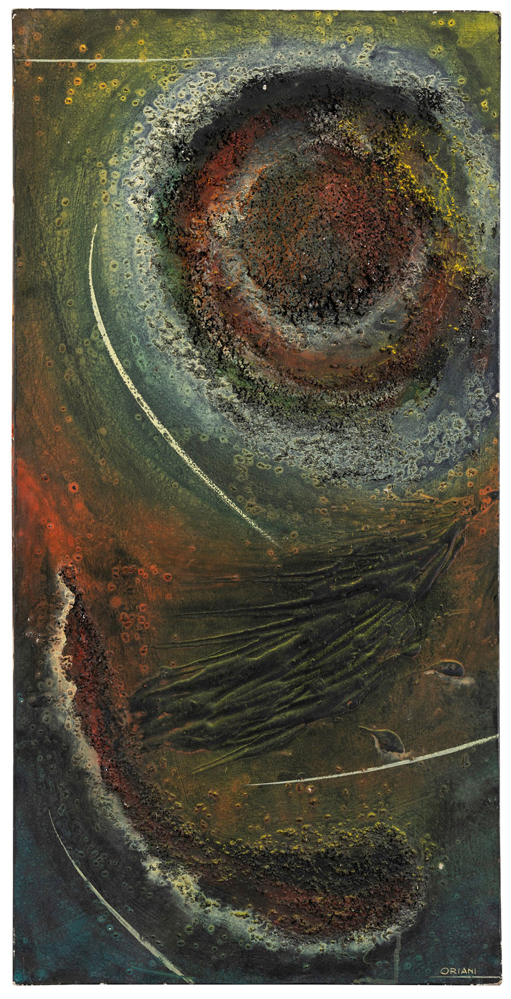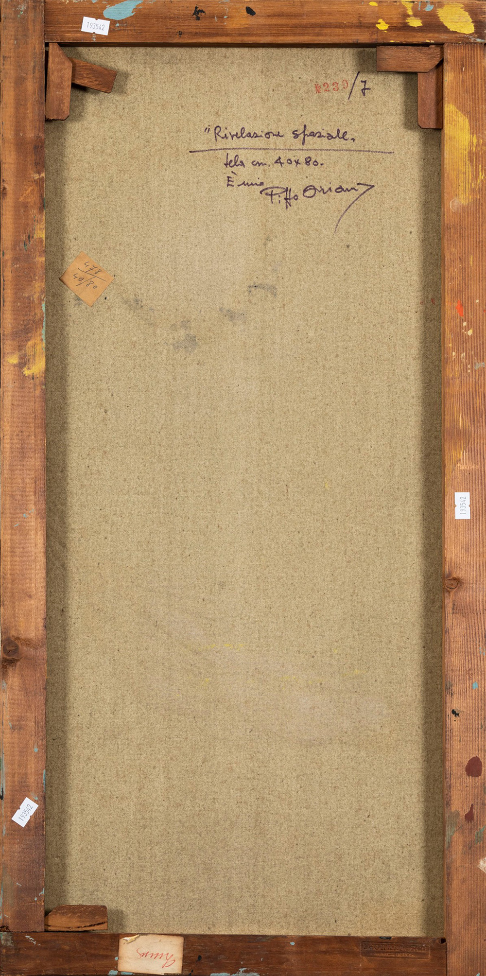 Pippo Oriani (1909-1972) Rivelazione spaziale tecnica mista su tela, cm 80x40 firmato in basso a destra firmato e intitolato al retro L’opera presenta piccole abrasioni sui margini