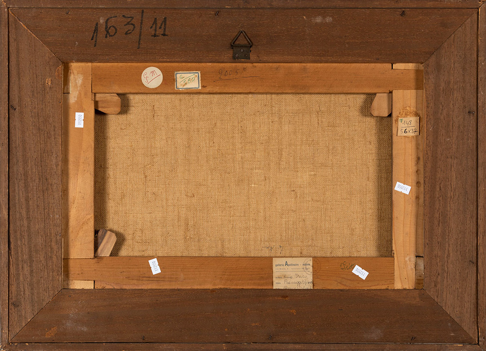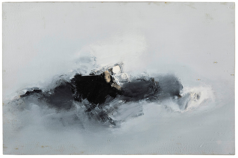 Luis Feito (1929) Paesaggio, 1958 olio su cartone intelato, cm 36x56 firmato in basso a destra firmato, intitolato e datato al retro Etichetta al retro della Galleria Apollinaire, Milano L’opera si presenta in buono stato di conservazione