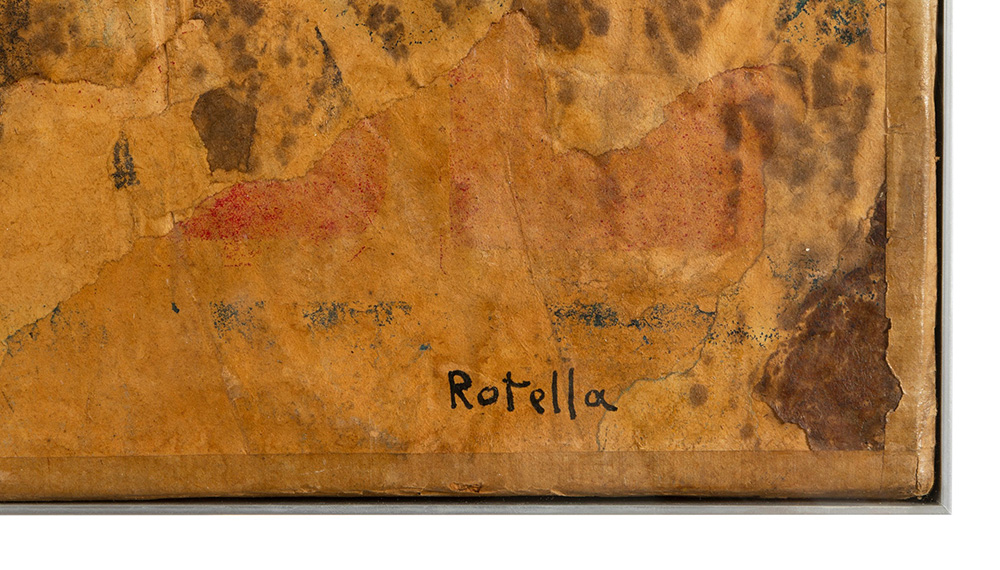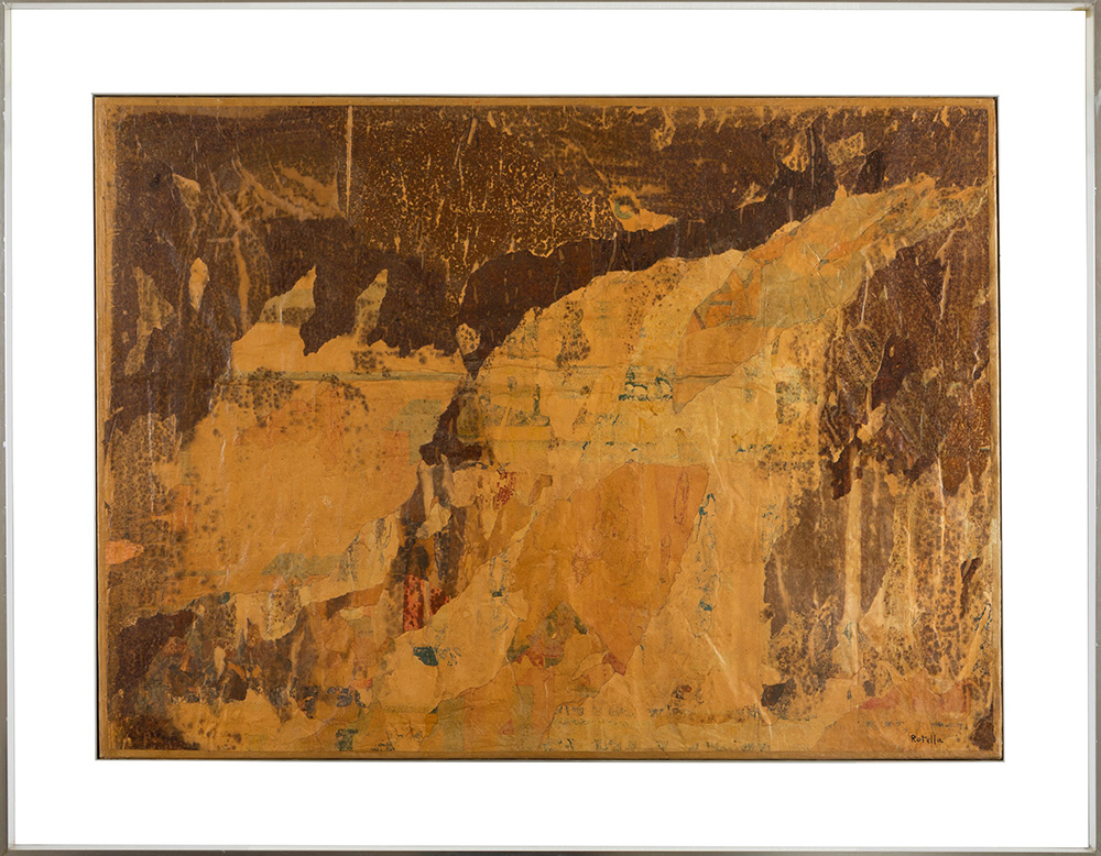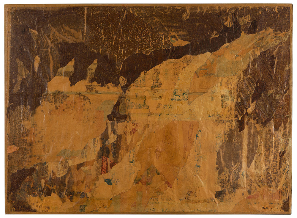 Mimmo Rotella (1918-2006) Senza titolo, 1955 ca retro d’affiche riportato su tela, cm 62,5x86 firmato in basso a destra Timbro al retro della Galleria Ravagnan, Venezia Opera registrata presso la Fondazione Mimmo Rotella, Milano, con il codice di Archivio 2251 RA s.d./955ca. L’opera si presenta in buono stato conservativo. Piccolo graffio sul bordo sinistro al centro.