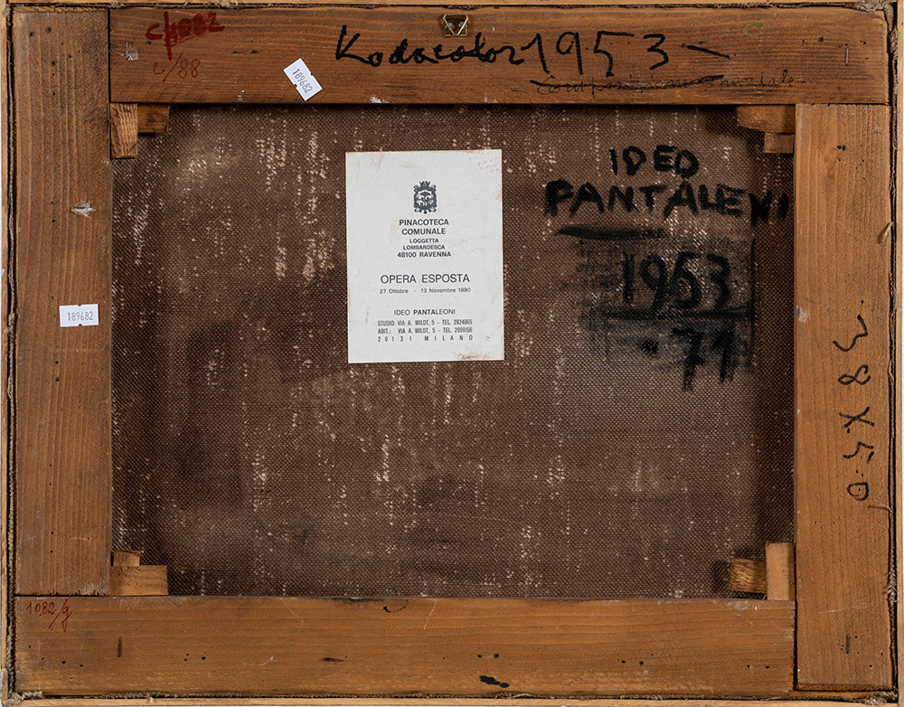 Ideo Pantaleoni (1904-1993) Kodacolor, 1953 olio su tela, cm 40x50 firmato e datato in basso a destra firmato, intitolato e datato al retro Etichetta al retro della Pinacoteca Comunale di Ravenna Esposizioni: Pinacoteca Comunale di Ravenna, 27 ottobre - 13 novembre 1990 In buone condizioni. Presenta lieve patina di sporco.