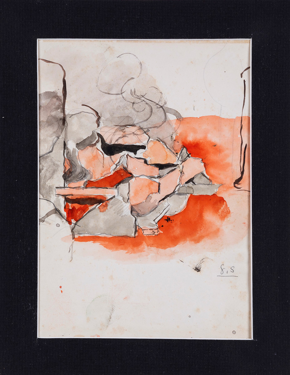 Graham Sutherland (1903-1980) Senza titolo, fine anni '60-inizio anni '70 tecnica mista su carta, cm 22,6x17 siglato in basso a destra Autentica su fotografia a cura di K. Sutherland