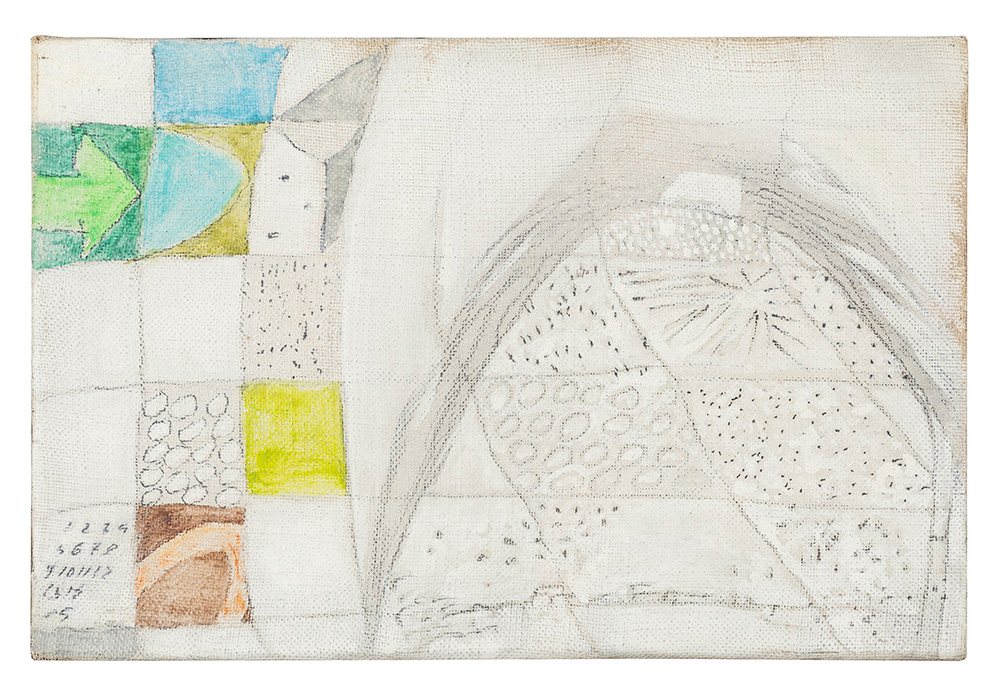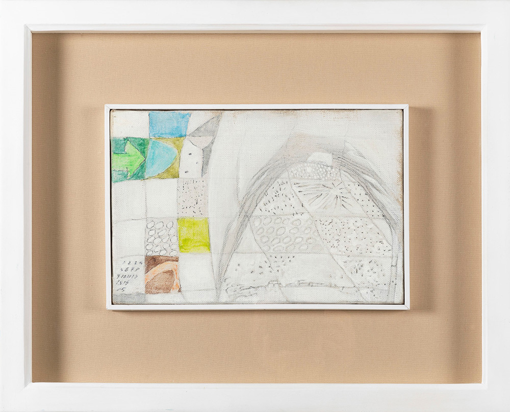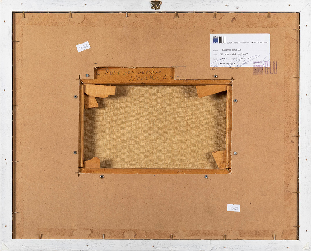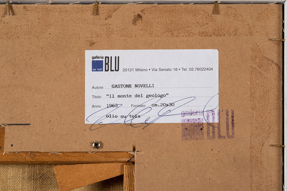 Gastone Novelli (1925-1968) Il monte del geologo, 1963 matita e tempera su tela, cm 20x30 firmato, datato e intitolato al retro della cornice Provenienza: Collezione Niudi, Roma Collezione Erica Fiorentini, Milano Galleria Blu, Milano Collezione privata, Milano Esposizioni: Roma 1992, n. 17 (ripr.) (olio) Bibliografia: Paola Bonani, Marco Rinaldi, Alessandra Tiddia, Gastone Novelli Catalogo generale 1. Pittura e scultura, Silvana Editoriale, Milano, 2011, p. 266