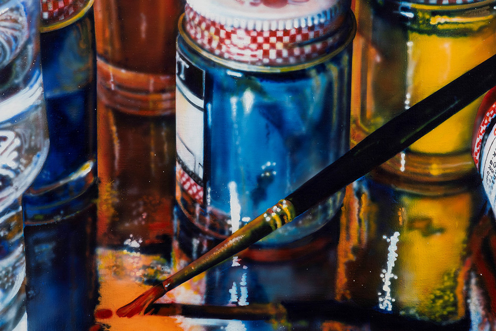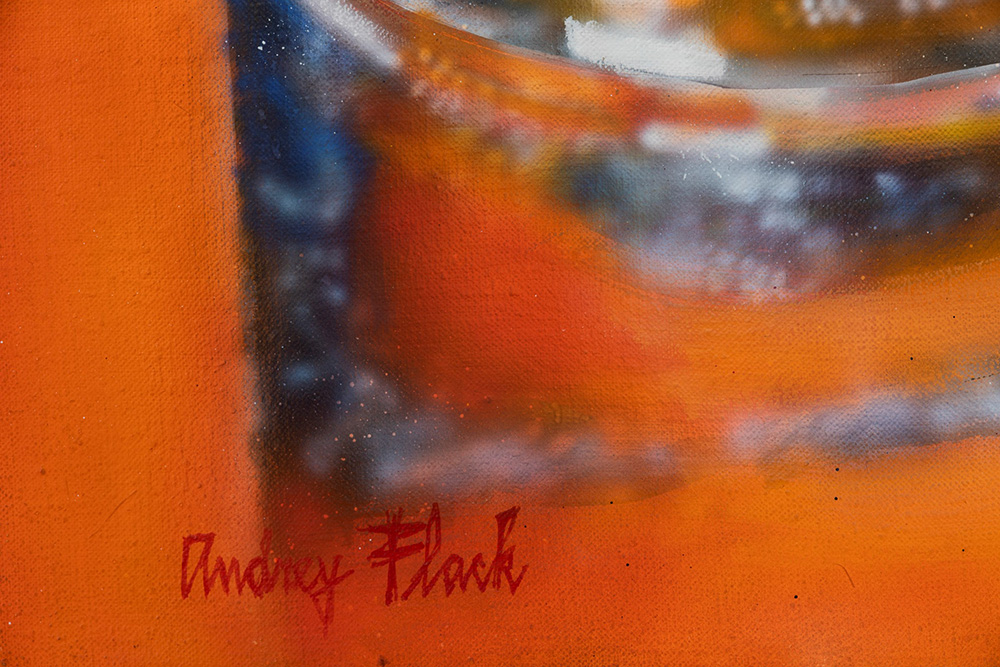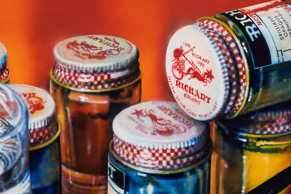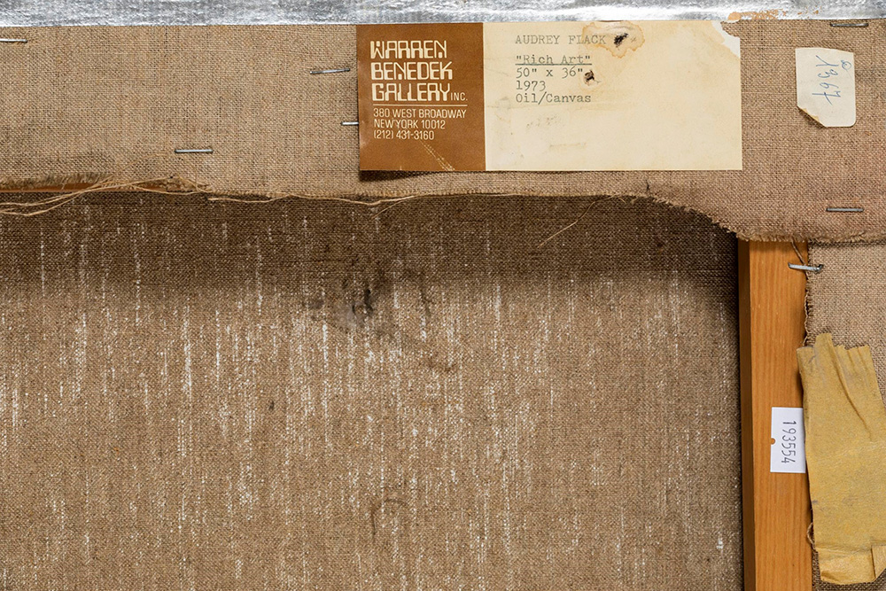 Audrey Flack (1931) Rich Art, 1973 olio su tela, cm 92,5x127,5 firmato in basso a sinistra Etichetta al retro Galerie Arditti, Parigi Etichetta al retro della Warren Benedek Gallery inc., New York Provenienza: Collezione Mazzotta, Milano L’opera presenta piccole macchie di sporco in alto sui bordi, in basso a destra abrasione del colore