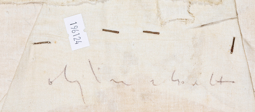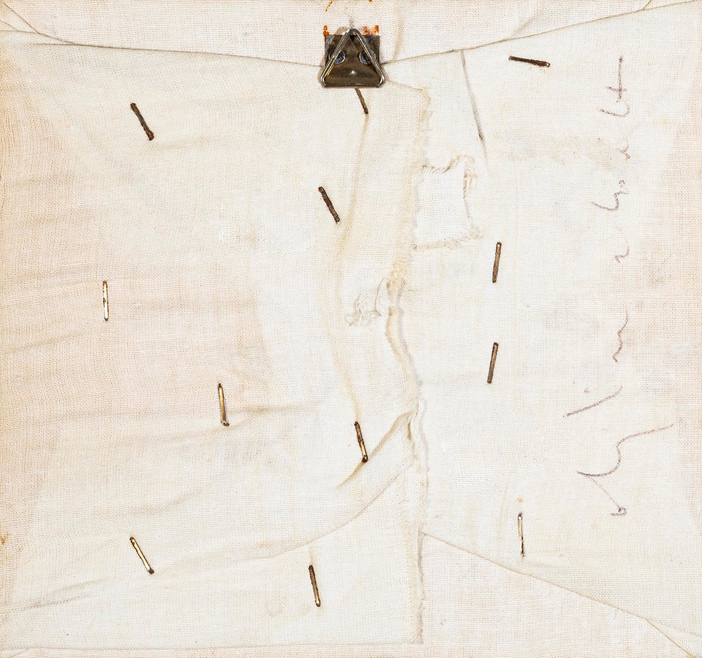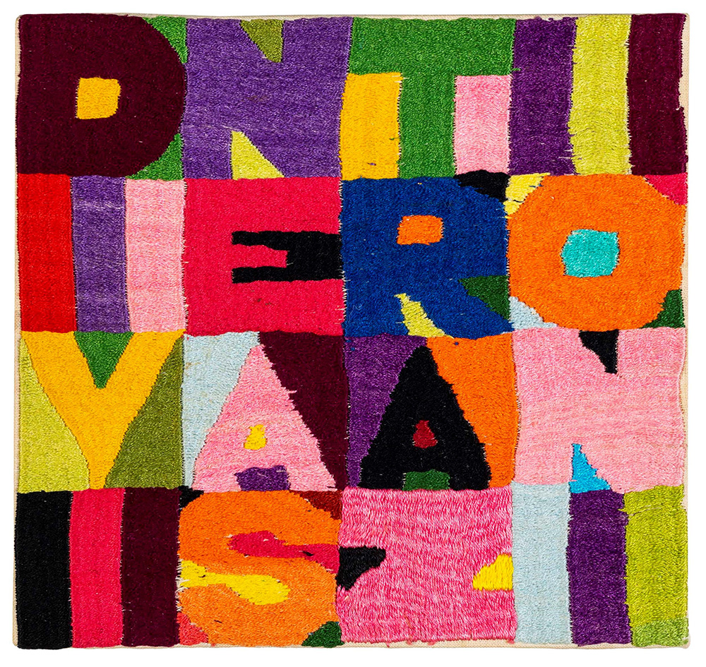 Alighiero Boetti (1940-1994) Divine astrazioni, 1987 ca ricamo su tessuto, cm 17,2x18 firmato al retro Opera registrata presso l’Archivio Alighiero Boetti, Roma, in data 2 dicembre 2015, con il n. 8152