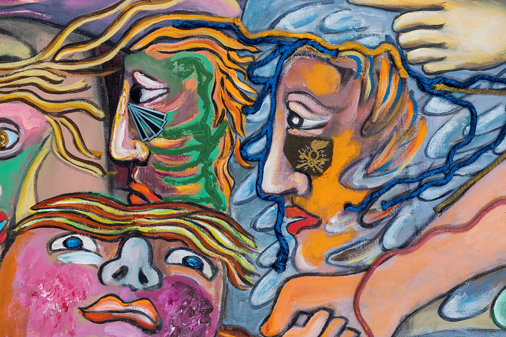 Enrico Baj (1924-2003) Darma, tigre fedele, protegge Marianna detta la Perla di Labuan, 1989 acrilici e collage su tela, cm 150x200 Provenienza: Villa Mirabello, Varese, 1990, ill. cat. col. n. 24 Bibliografia: L’Occasione, n. 367. Varese, 2-8.12.1989, col. Varese Mese, Varese, marzo, part. / La Prealpina, Varese, 7.4.1990 Marconi-Menhir, Enrico Baj. Catalogo generale delle opere dal 1972 al 1996, p. 340, n. 2309 Segni di sporco in corrispondenza dei bordi. Patina di polvere.
