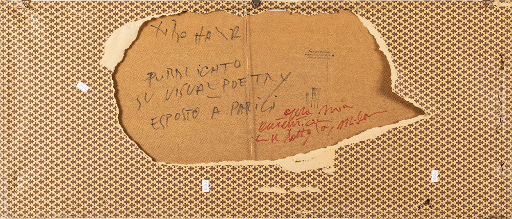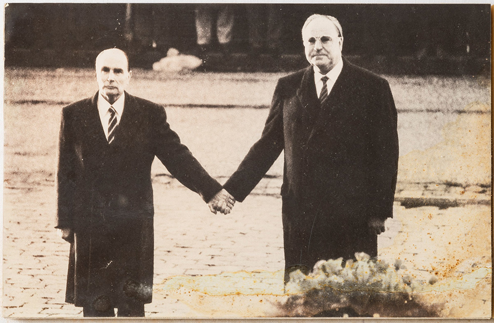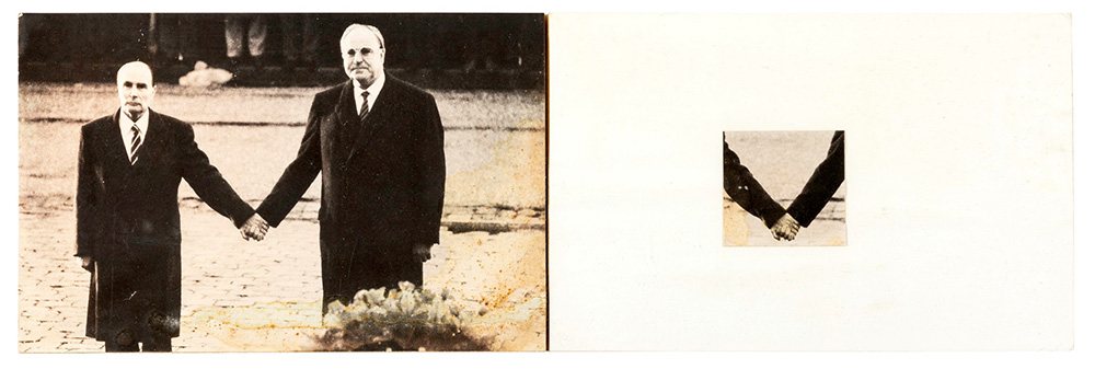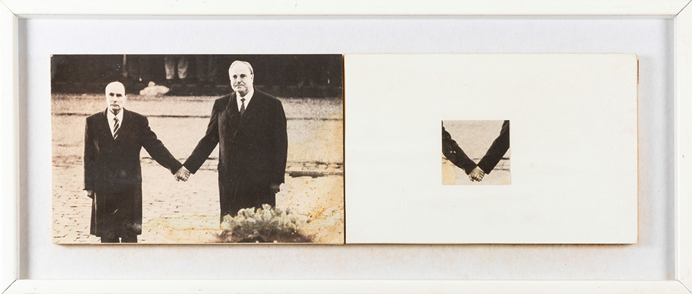 Xante Battaglia (1943) Mitterrand-Kohl, 1991 foto-collage e plexiglass, cm 30x80 firmato al retro Bibliografia: Pierre Restany, Xante Battaglia “Post-Consumismo”, Galerie Heyram Mabel Semmler, Parigi, 14 marzo - 31 maggio 1991, p. 8, ripr. in b/n Giosuè Allegrini, Lara-Vinca Masini, Visual Poetry, L’avanguardia delle neoavanguardie, Skira, Milano, 2014, p. 412, ripr. a colori