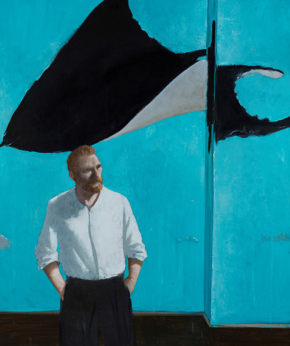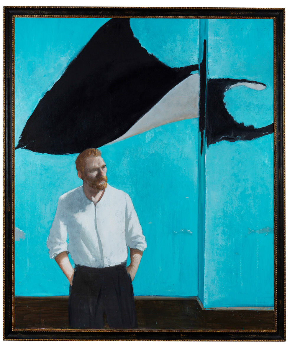 Julio Larraz (1944) A letter from Theo, 2003 olio su tela, cm 185x153 firmato in alto a destra intitolato e datato al retro Provenienza: Asta Christie's Latin American Sale, New York, 31 maggio 2007, lotto n. 4 Collezione privata, Bologna