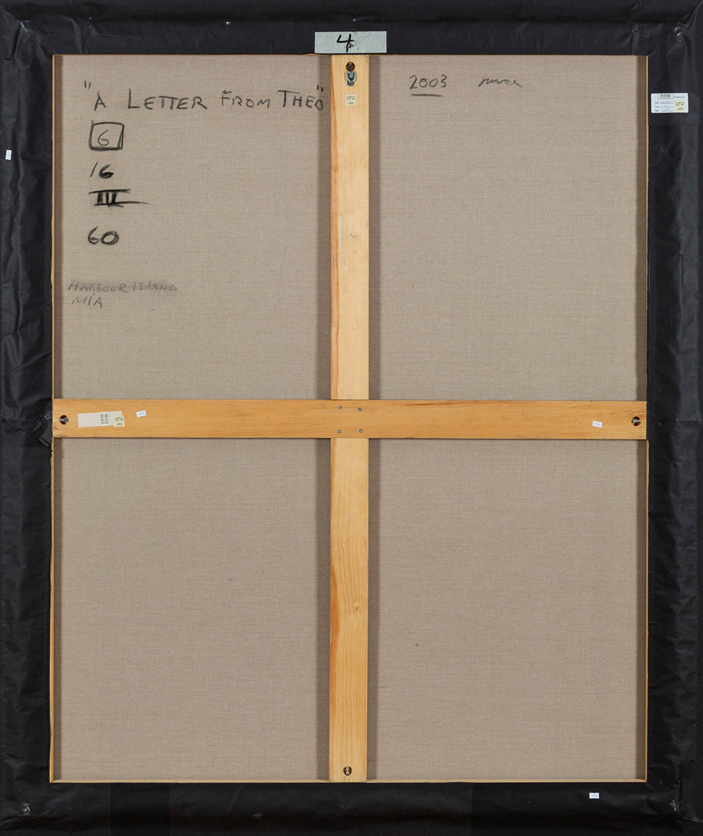 Julio Larraz (1944) A letter from Theo, 2003 olio su tela, cm 185x153 firmato...