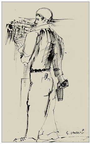 GIOVANNI OMICCIOLI Roma 1901 – Roma 1975 Senza titolo Inchiostro su carta 41 x 25. Firma in b. a d. base: 100
