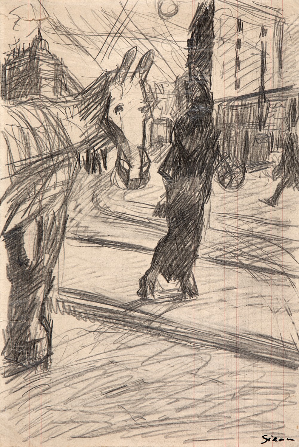 Mario Sironi Paesaggio urbano con cavallo 1916 ca matita su carta di registro cm 31x21